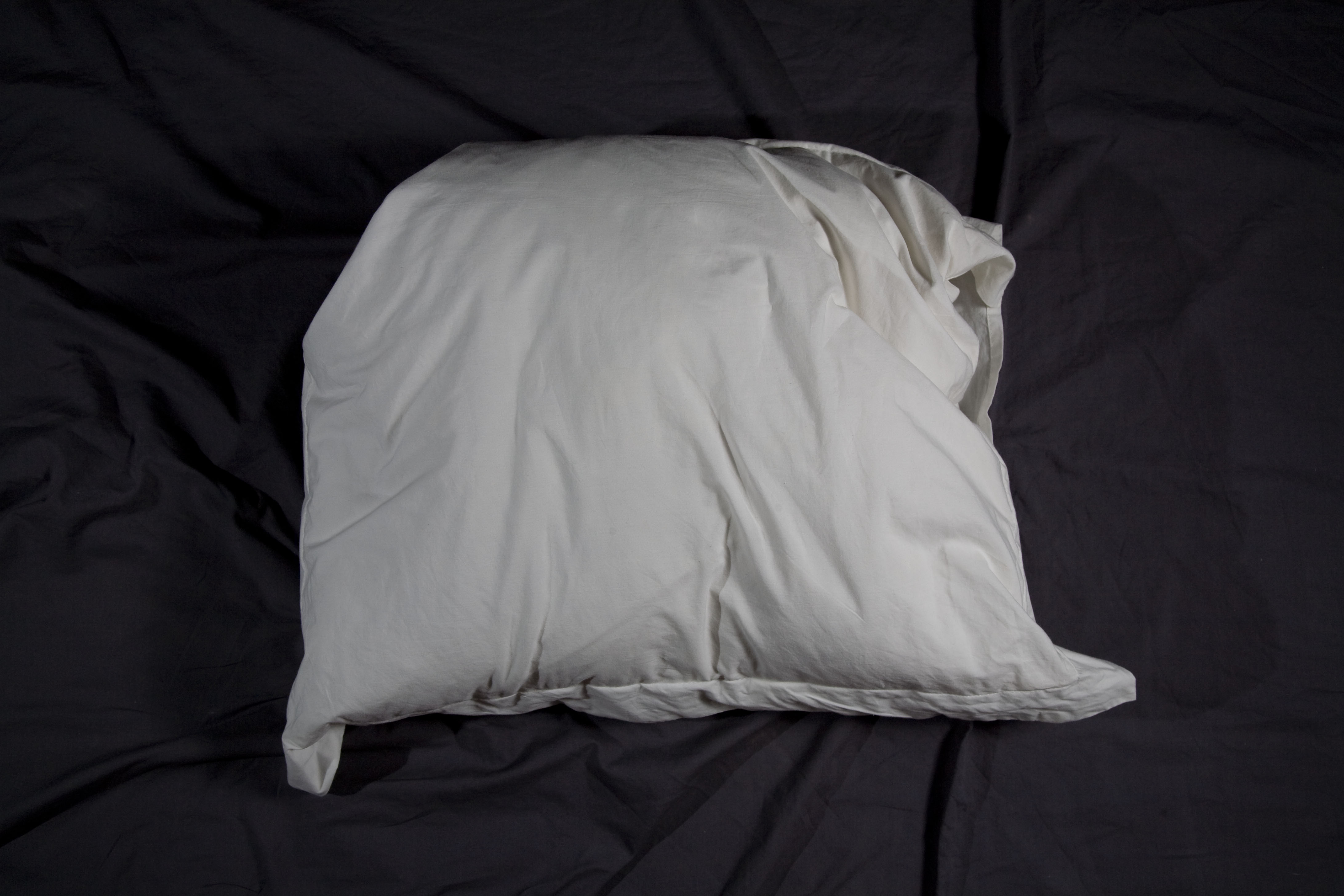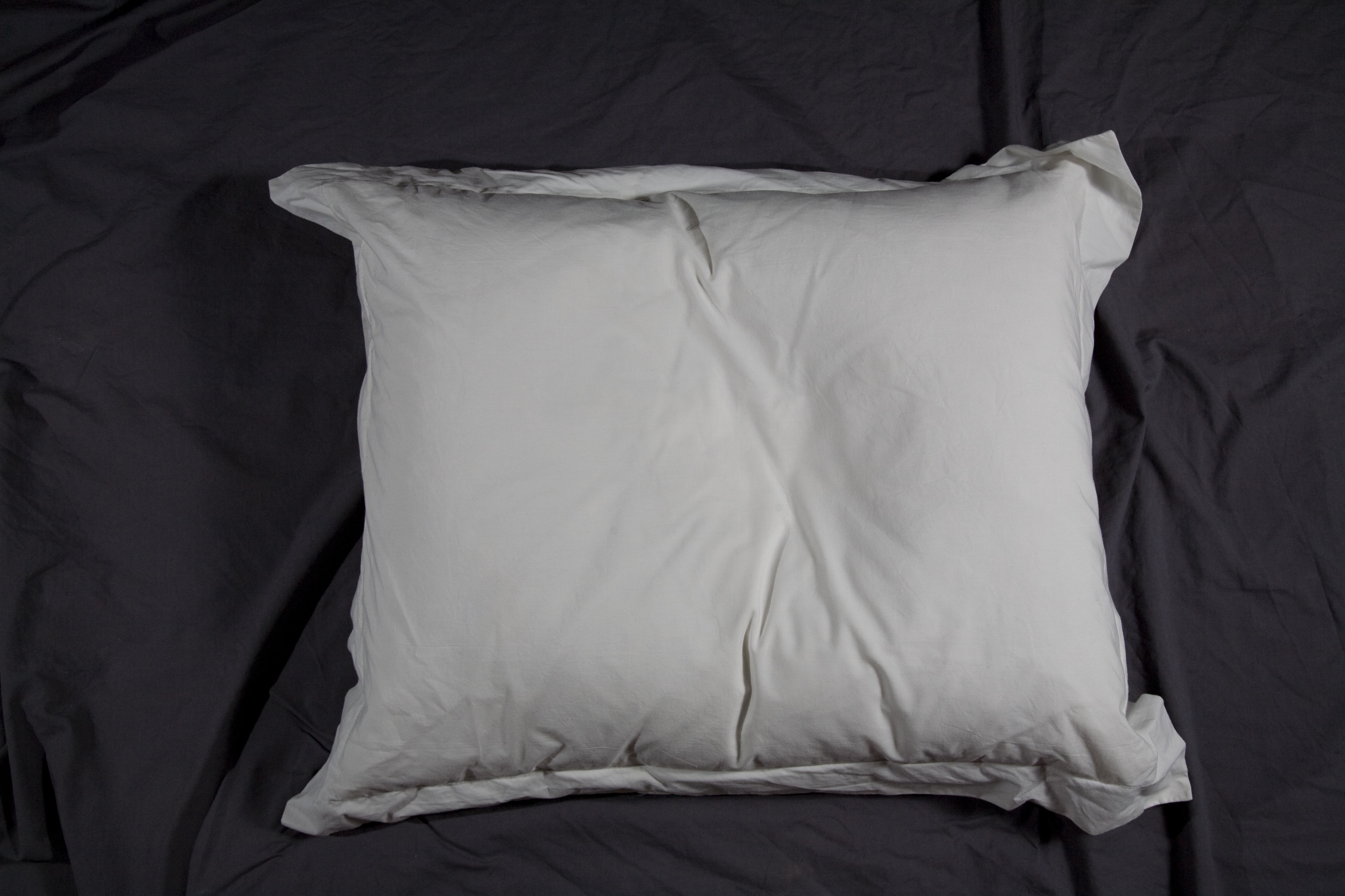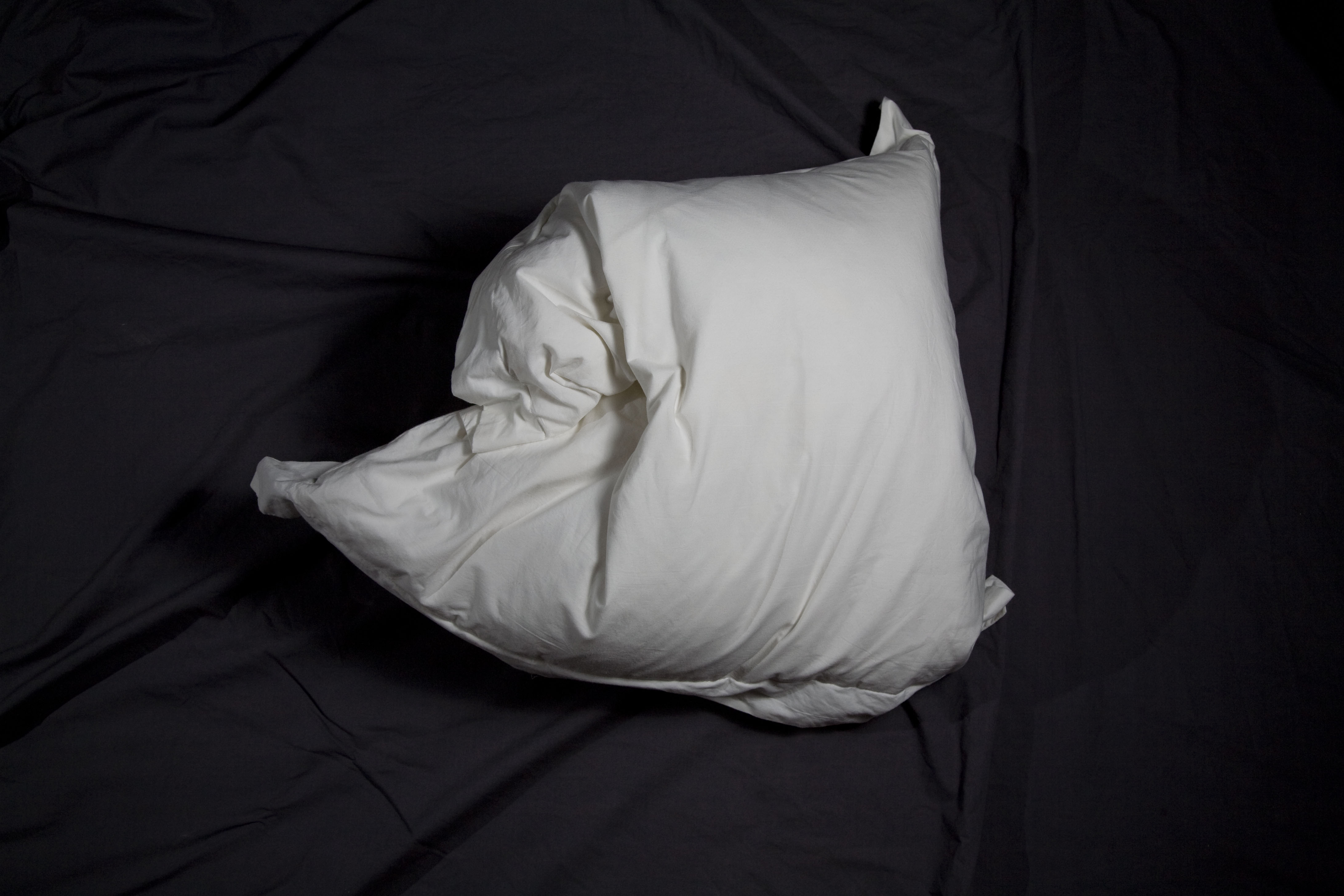 Diez almohadas, lágrimas y marquillas de tela cosidas al interior de cada almohada, bordadas en hilo plateado con uno de diez sentimientos. Técnica: instalación con objetos intervenidos. Dimensiones: variables.