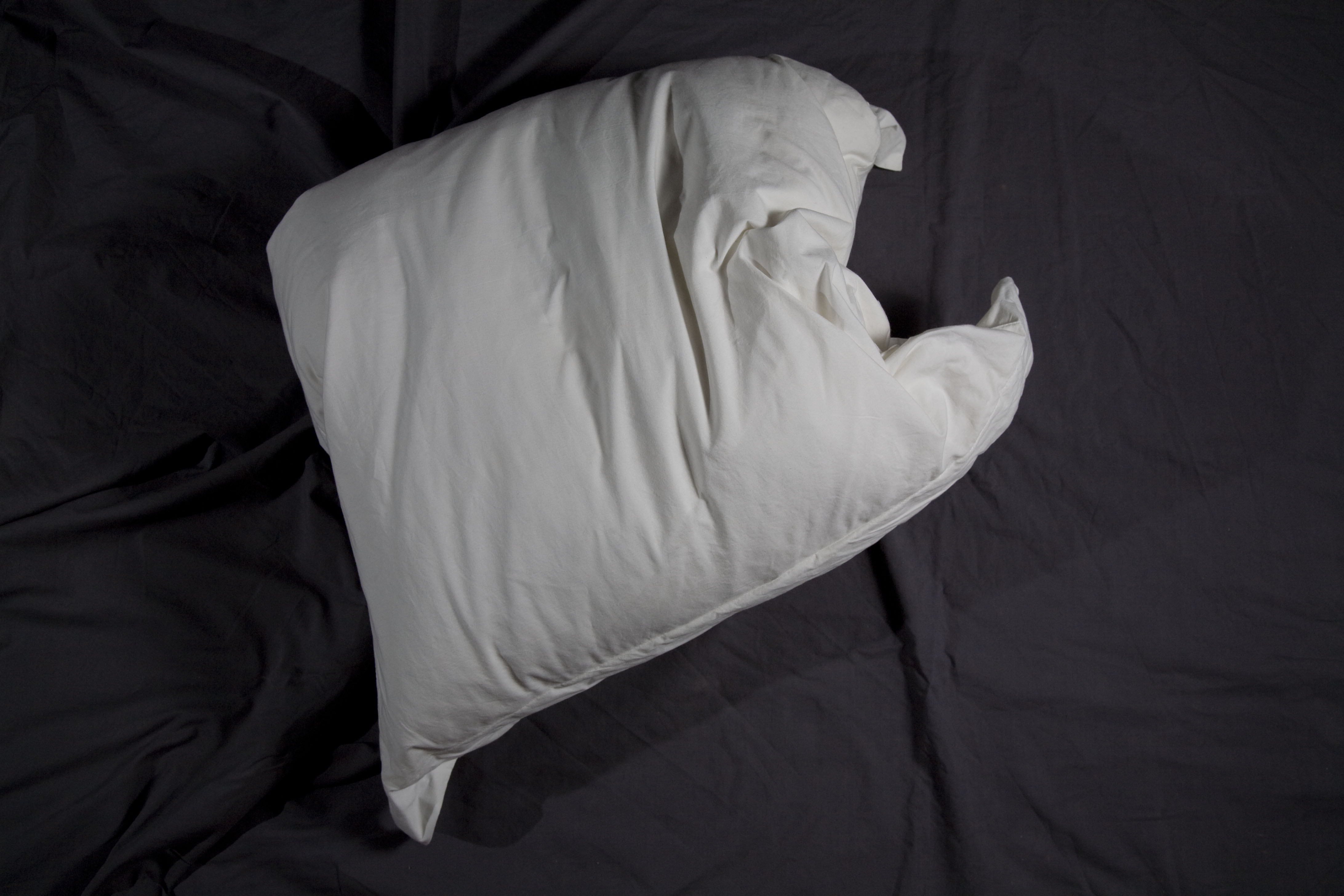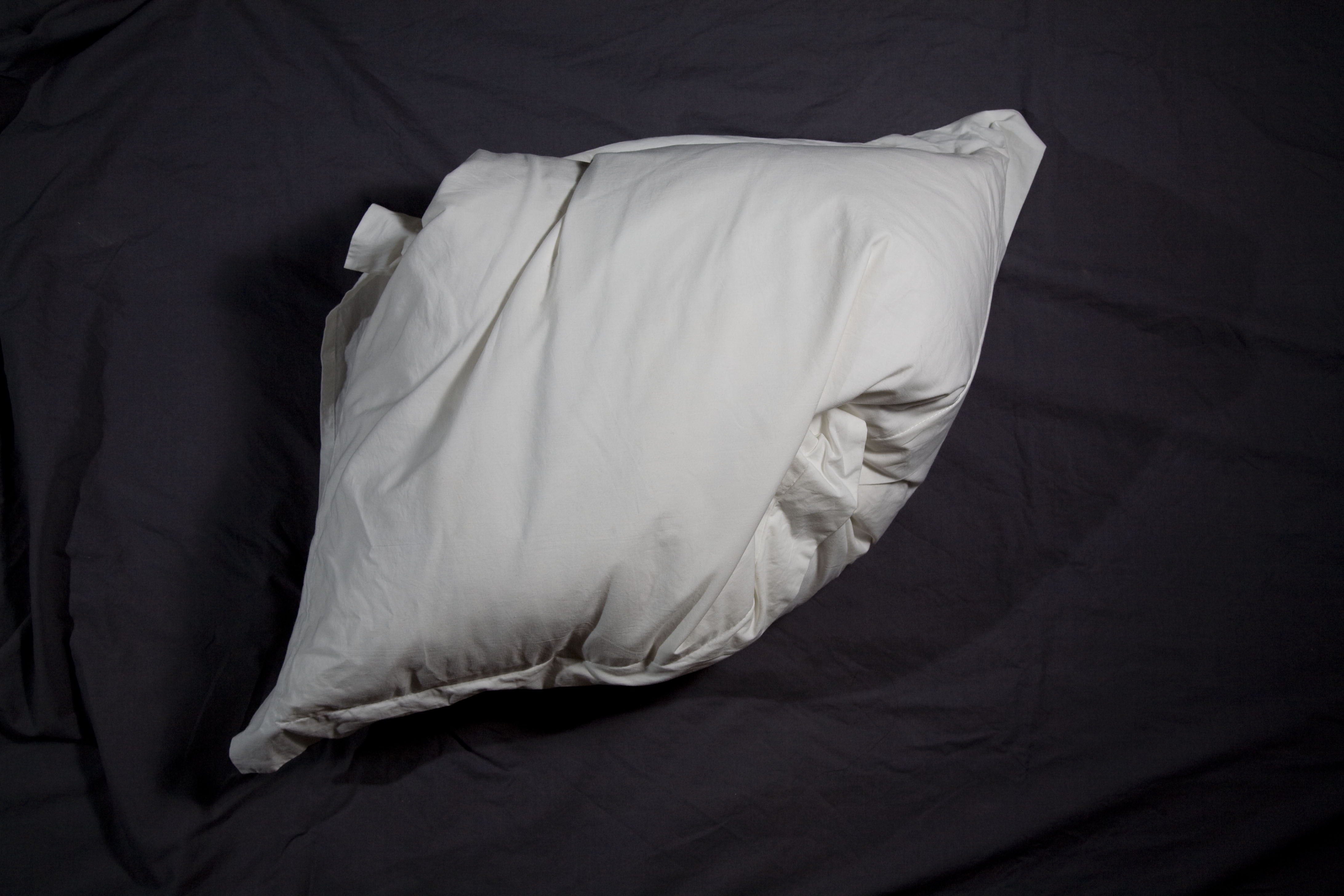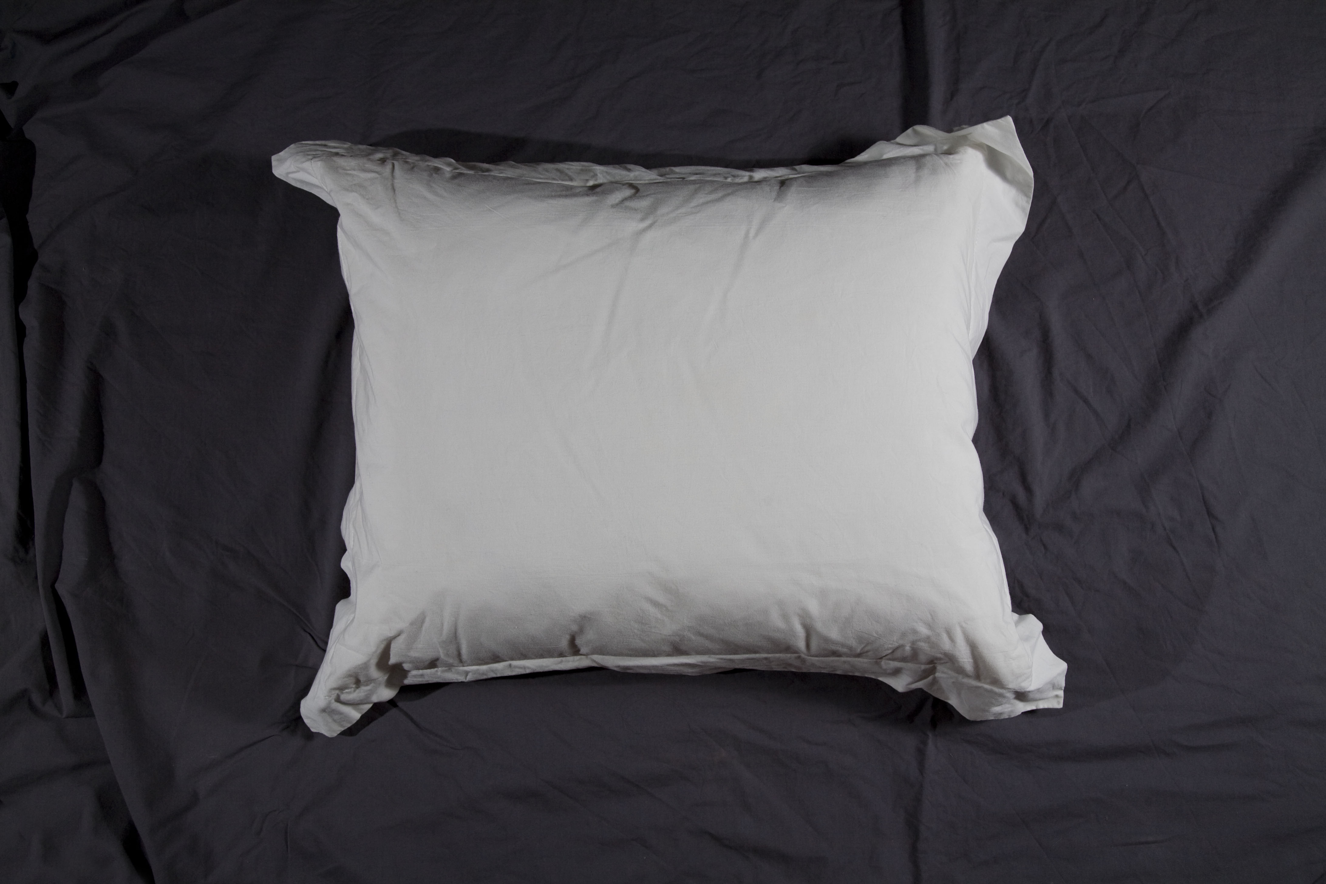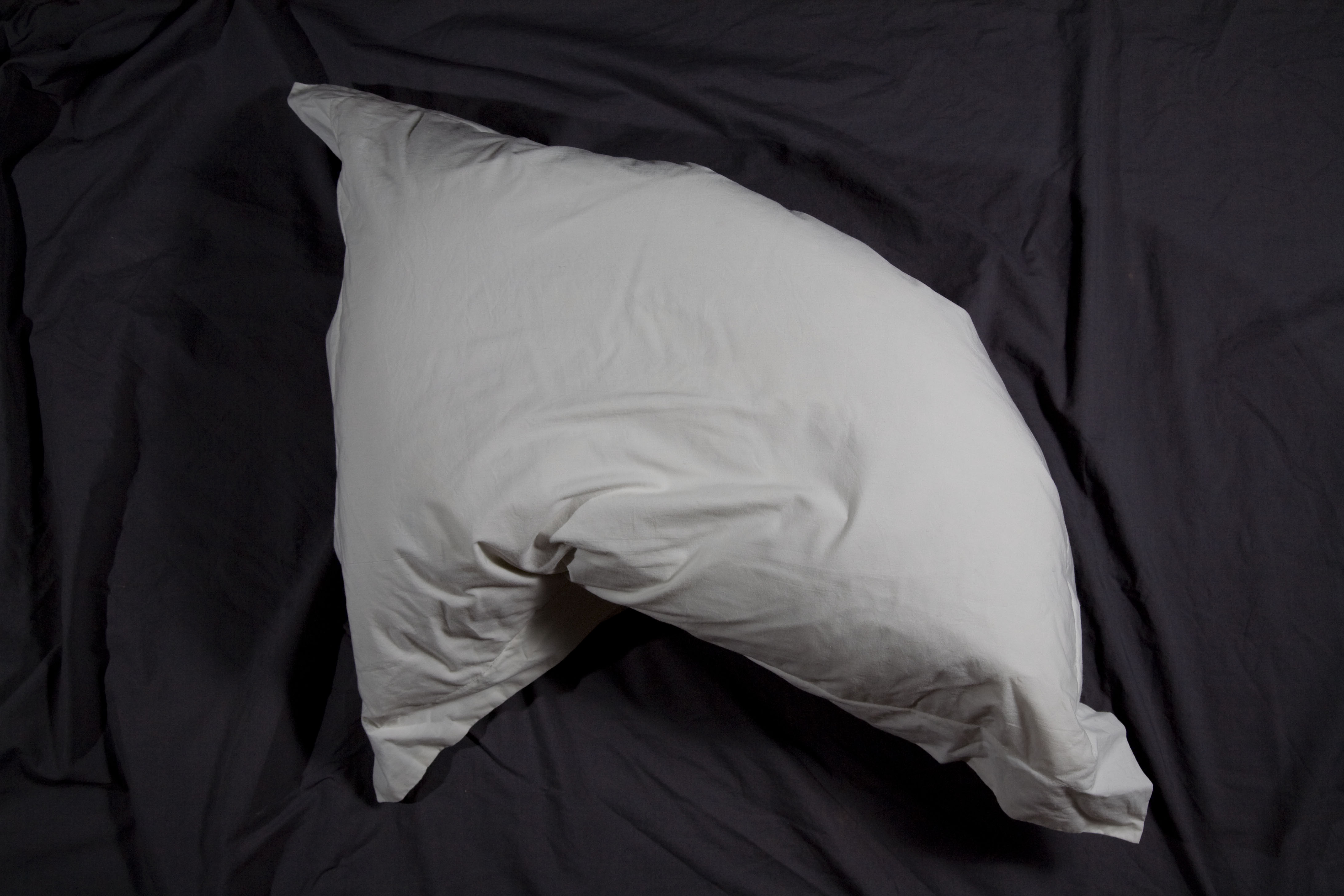Diez almohadas, lágrimas y marquillas de tela cosidas al interior de cada almohada, bordadas en hilo plateado con uno de diez sentimientos. Técnica: instalación con objetos intervenidos. Dimensiones: variables.