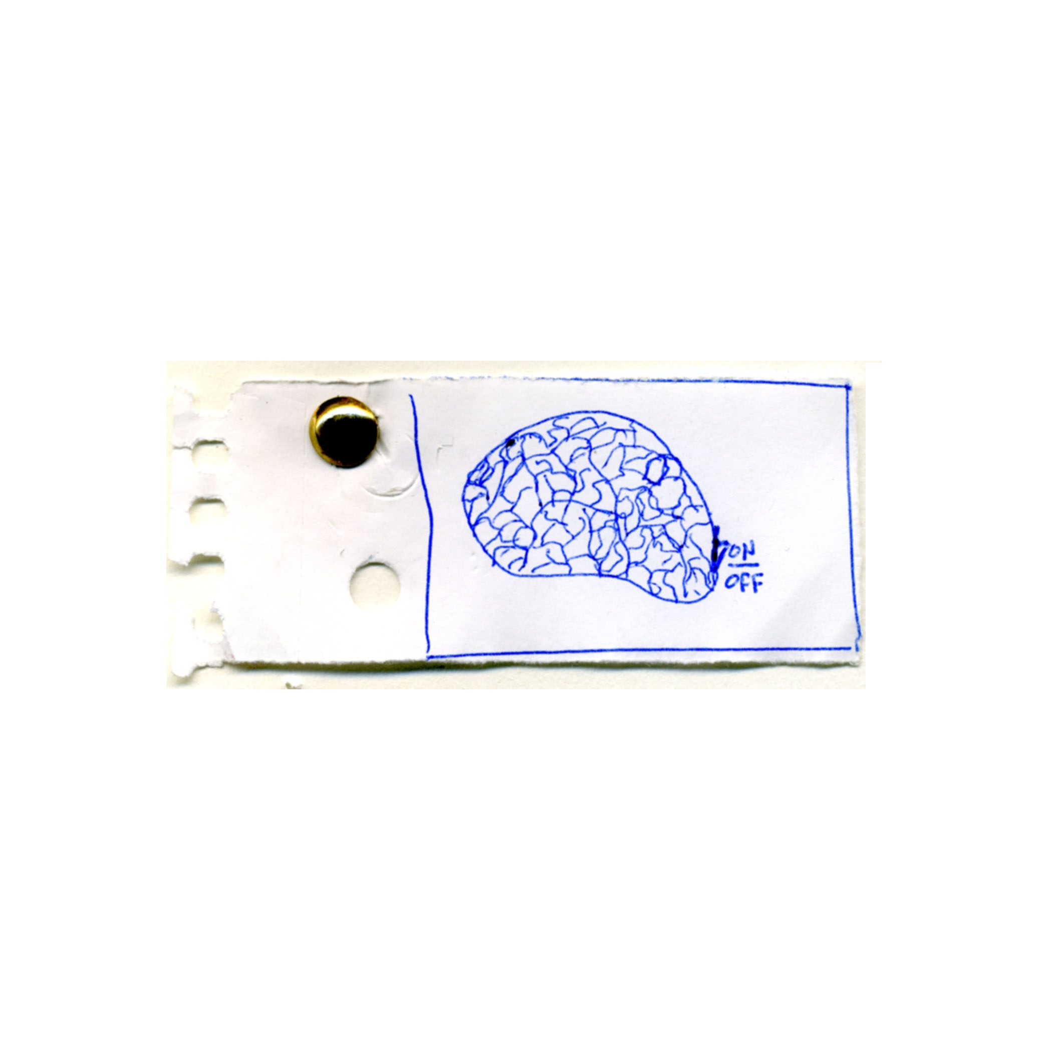 On-Off. Medidas: 8cm x 3,50cm. Dibujo en bolígrafo sobre papel y chincheta dorada.