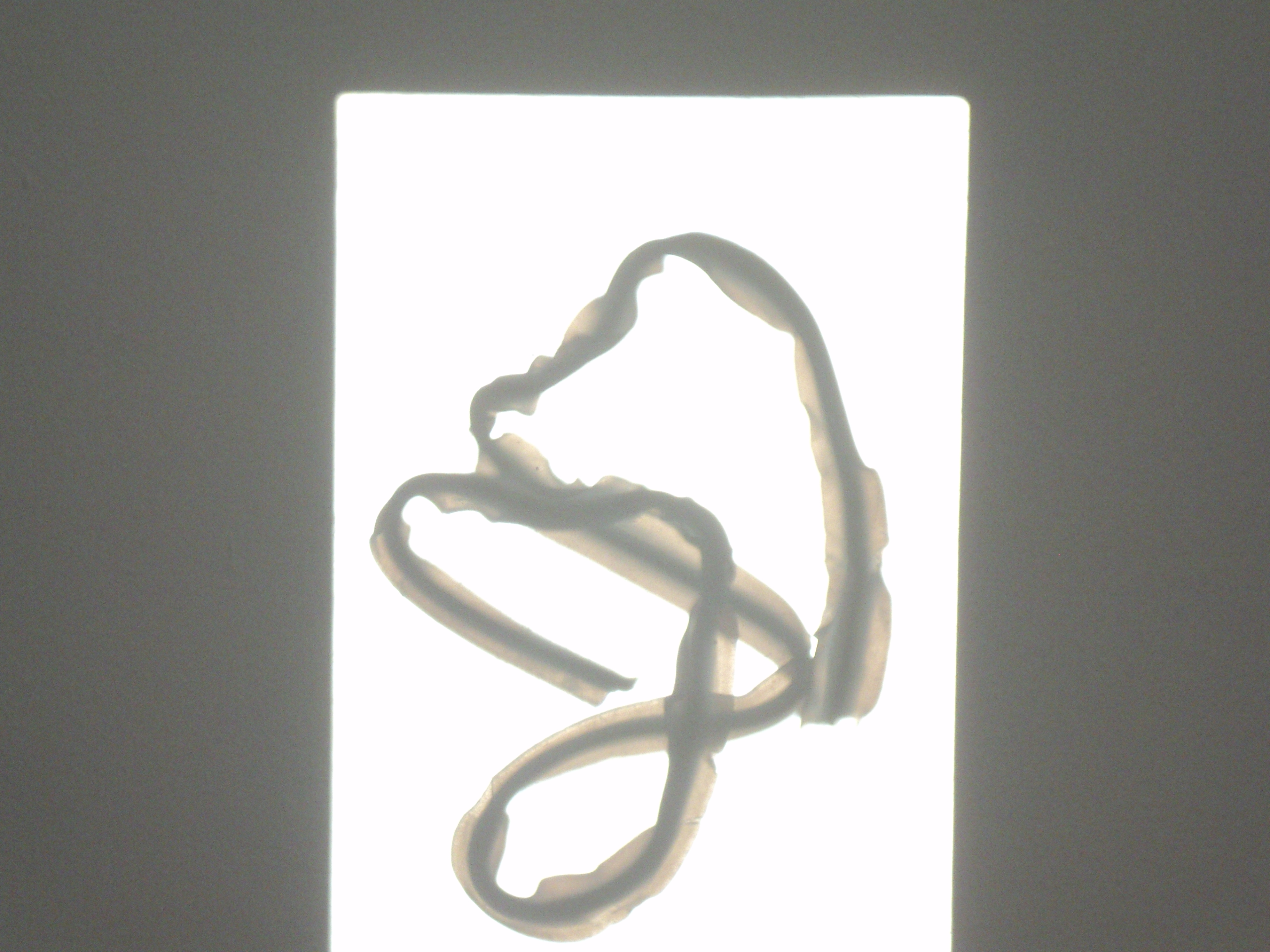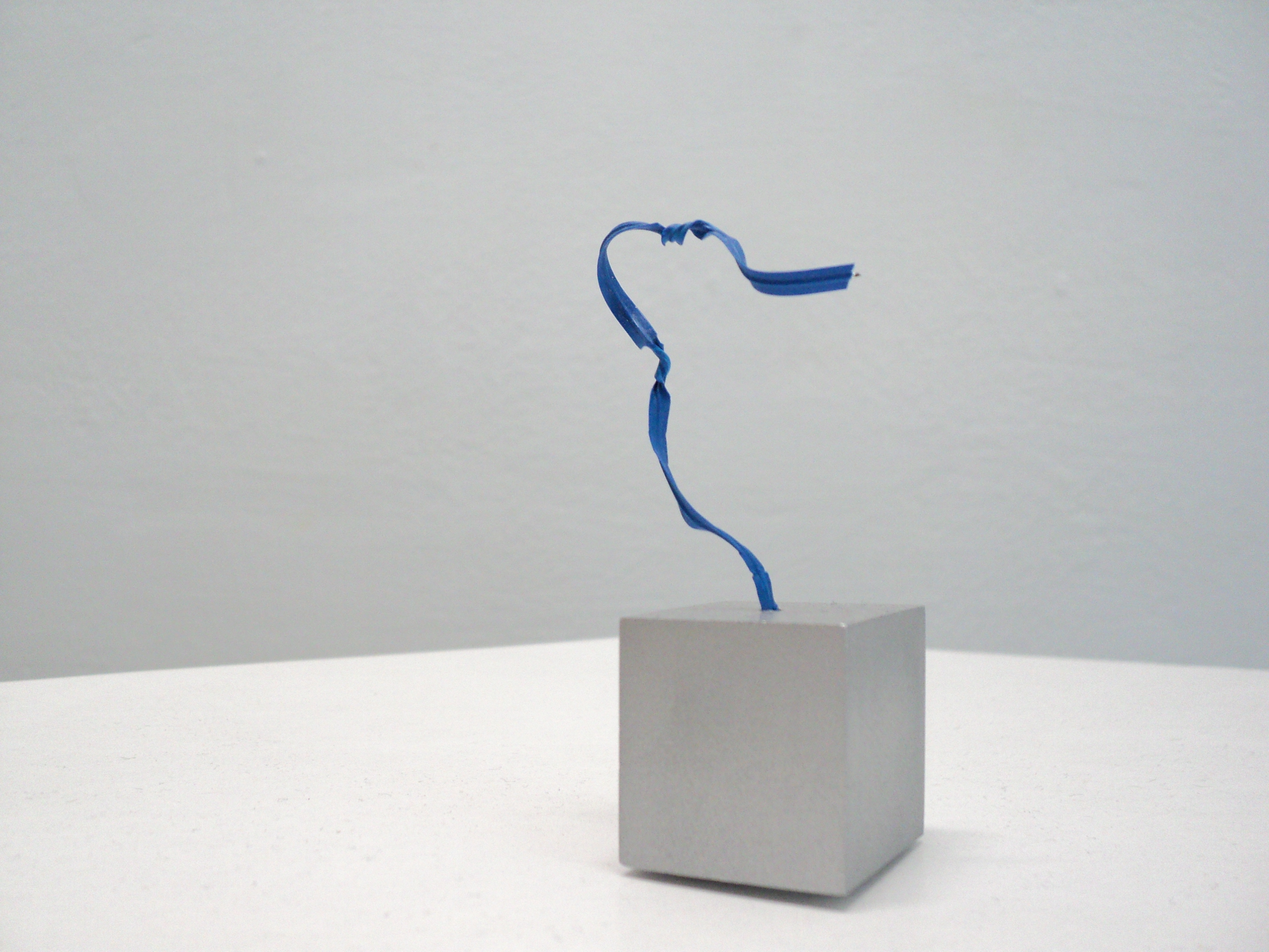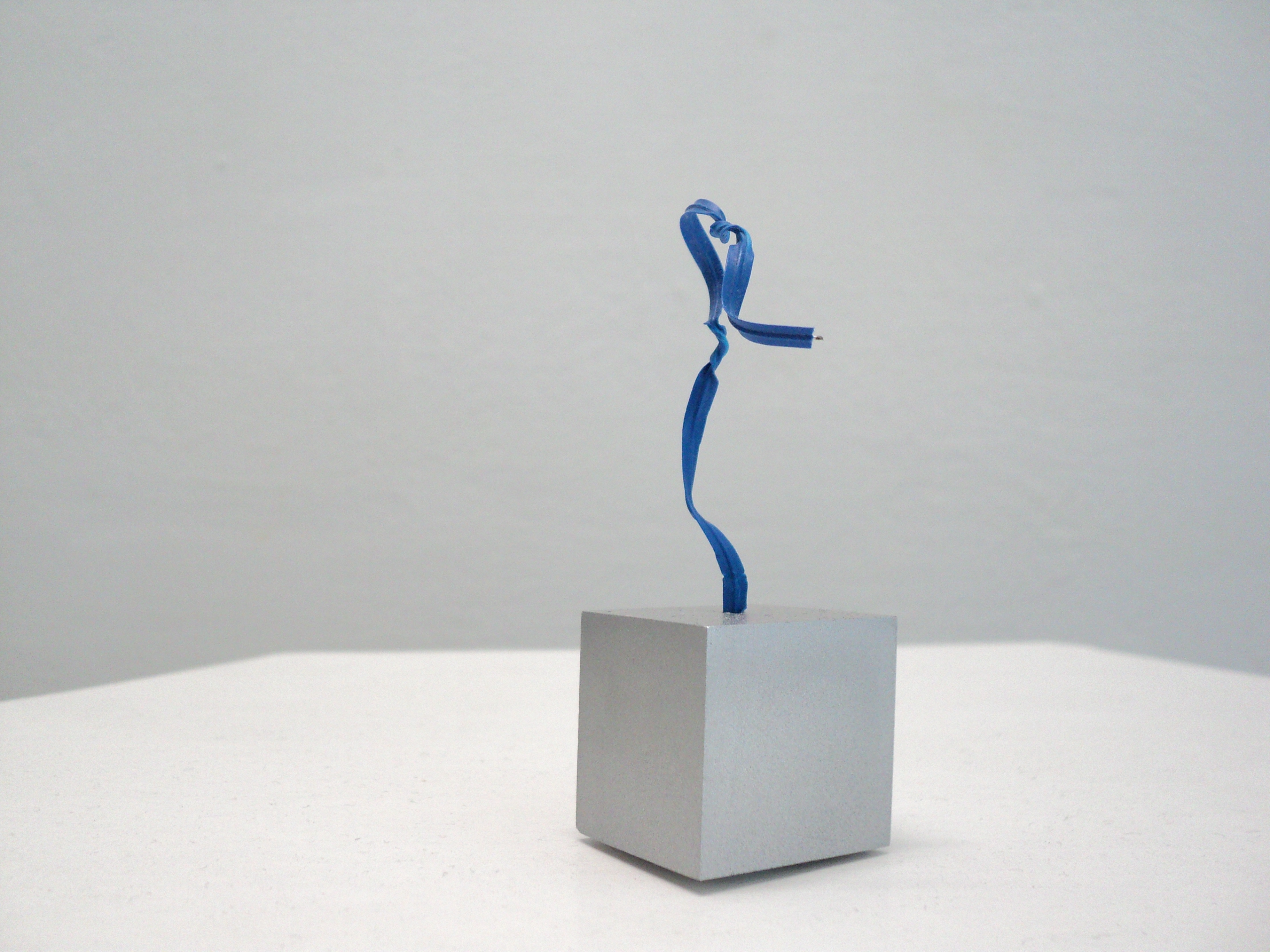 He tomado un elemento tan cotidiano como es un alambrito de los que cierran las bolsas del pan de molde, una línea de color maleable que dibuja el espacio, que está y obviamos ver.
